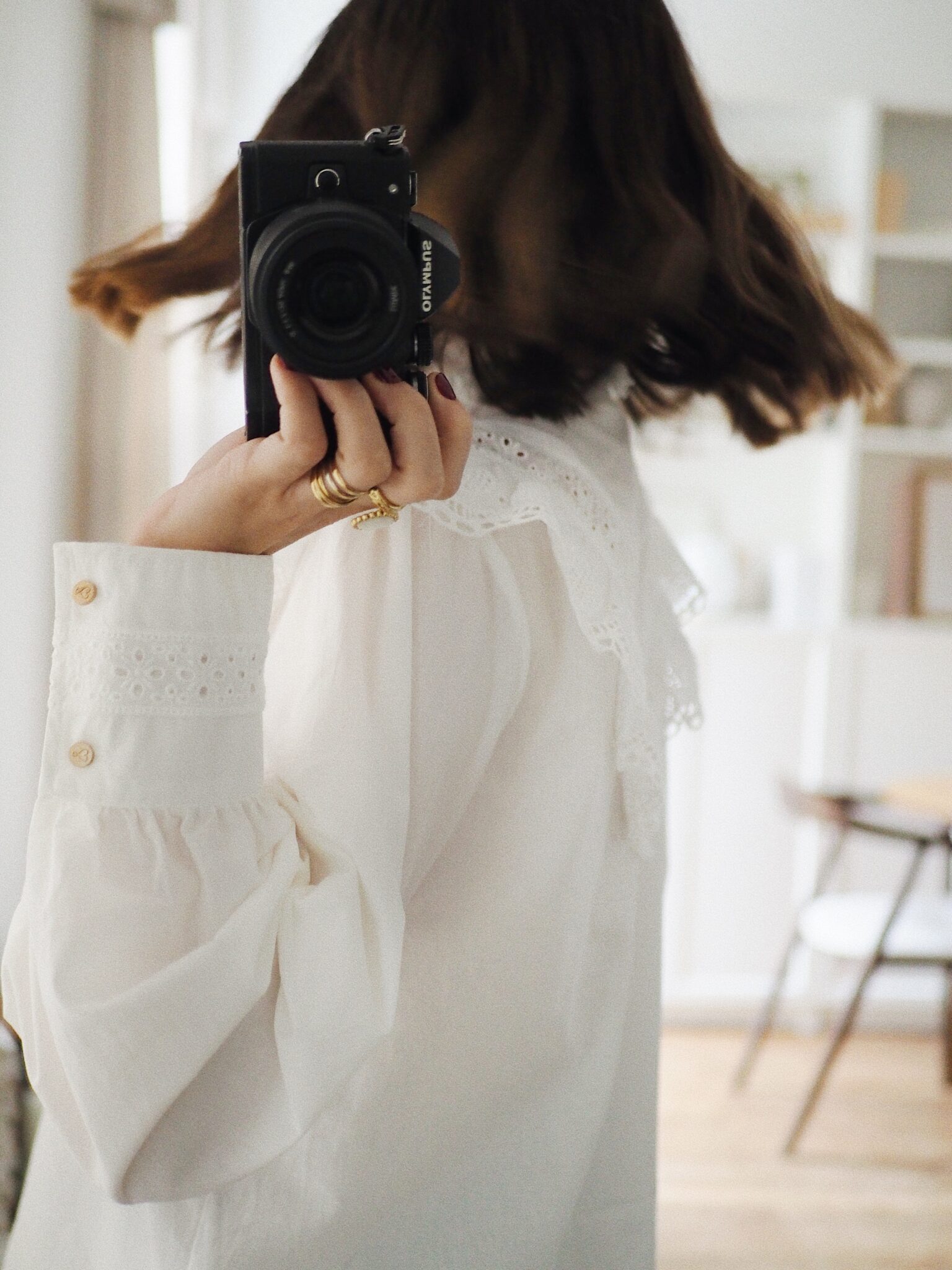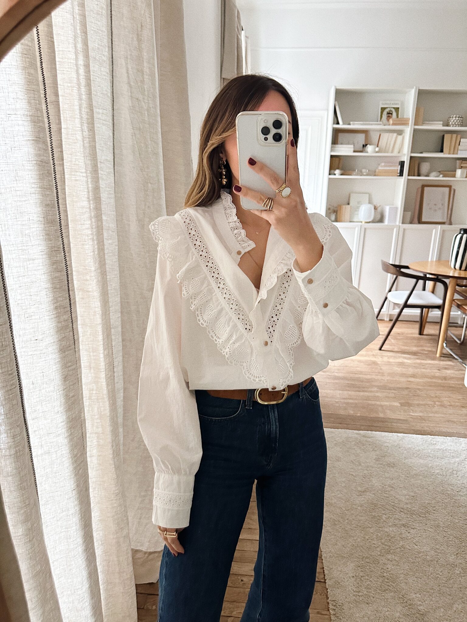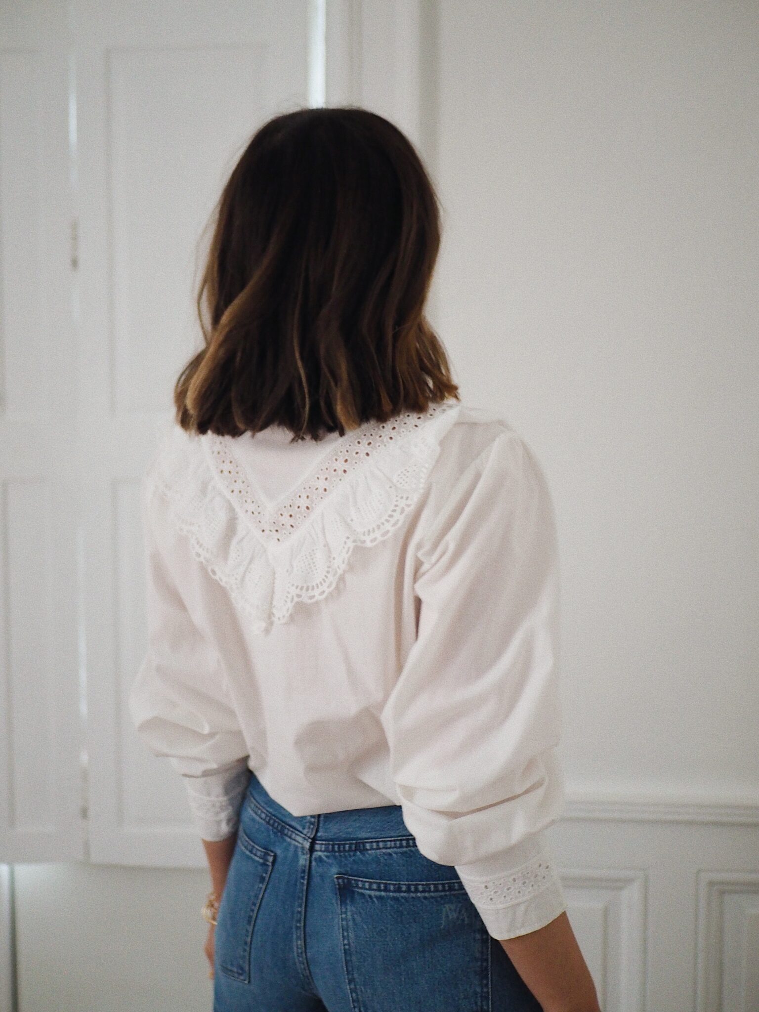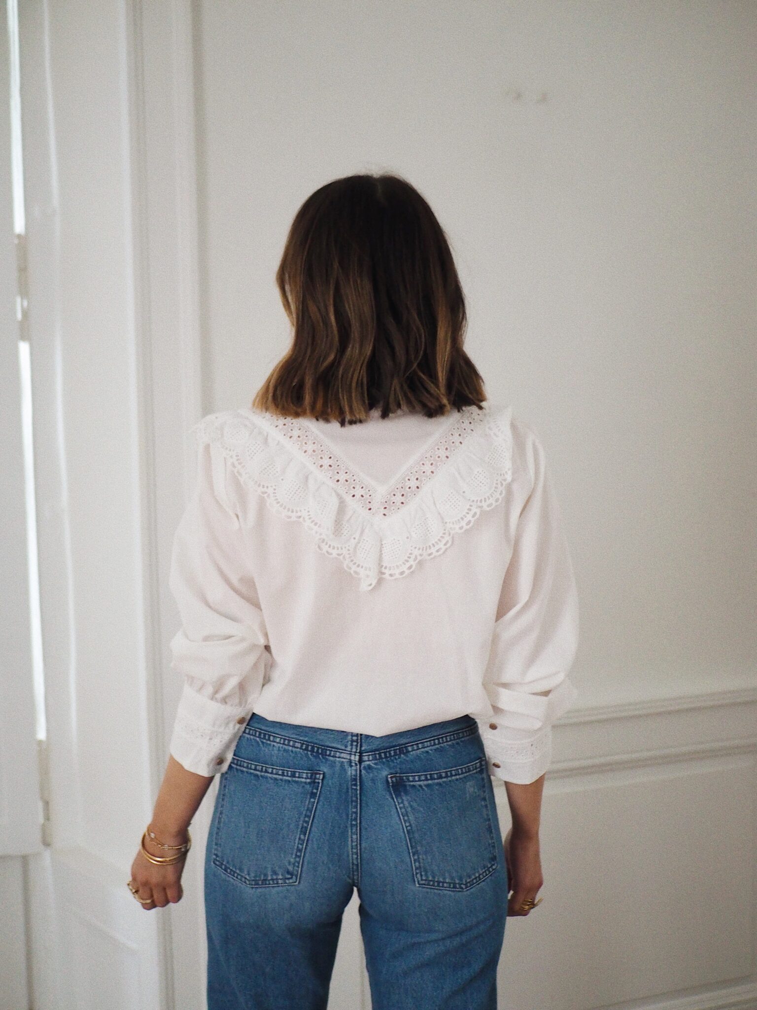 – Chemise en coton au style raffiné – Coloris blanc uni – Coupe droite – Col montant volanté avec détails brodés – Empiècement poitrine orné de dentelle ajourée – Fermeture boutonnée sur le devant – Manches longues avec double boutonnage – Une pièce délicate, romantique, idéale pour un look bohème chic