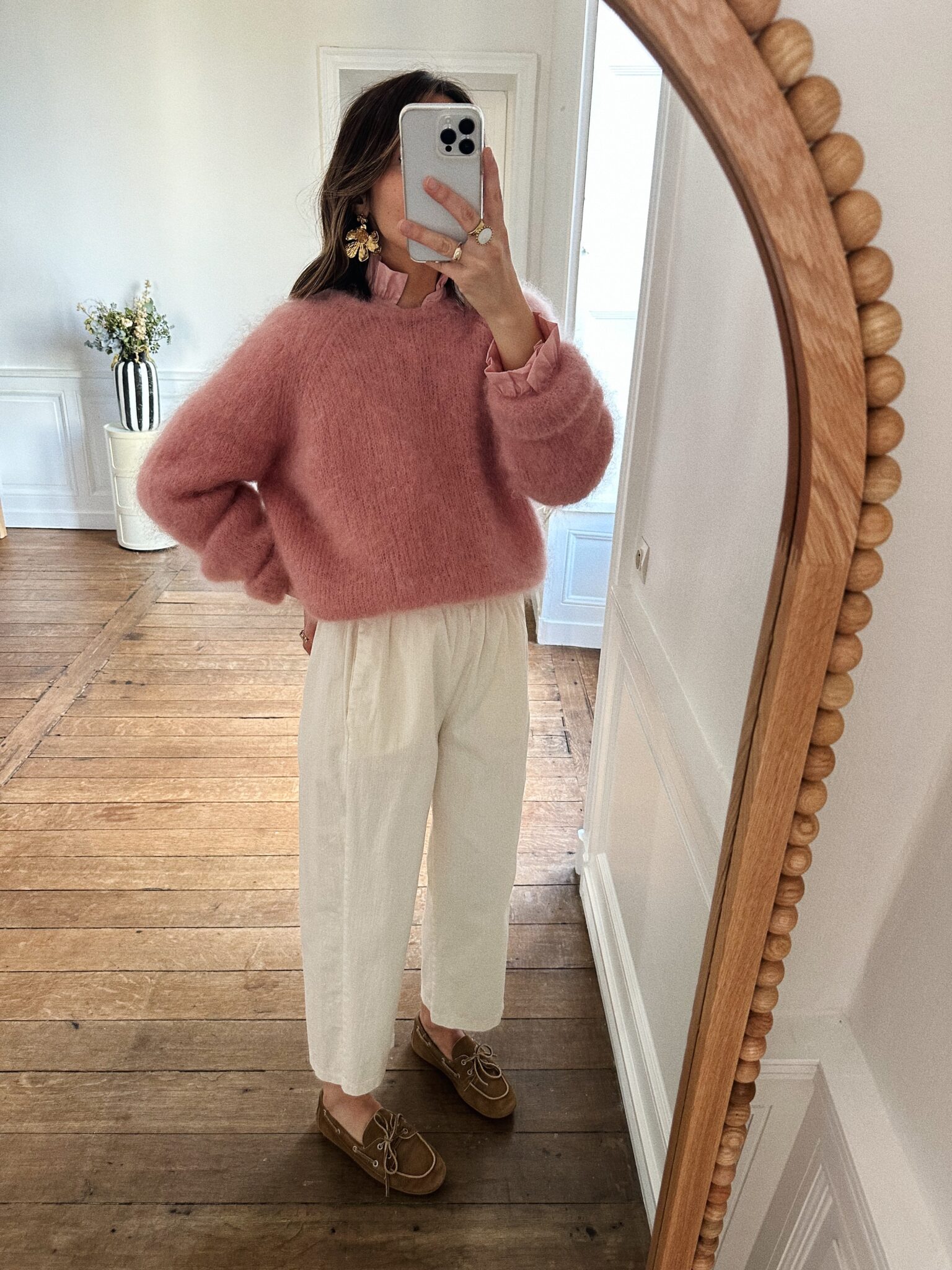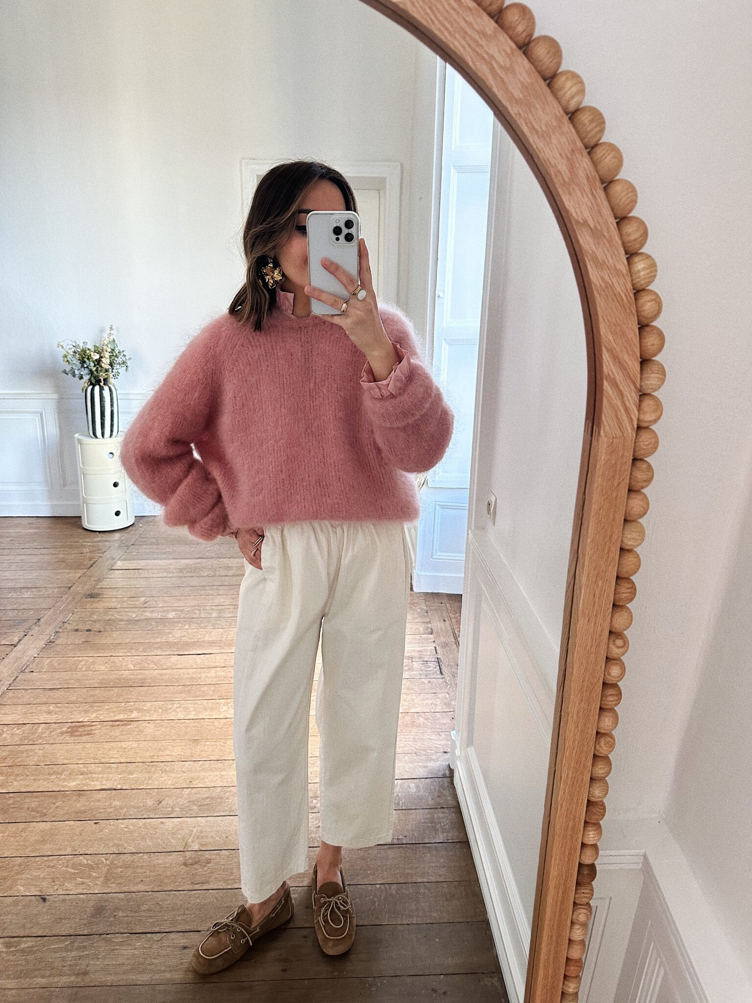 – Pantalon à la ligne souple et contemporaine – Coloris écru doux et lumineux, facile à associer – Coupe droite légèrement fuselée – Taille élastiquée au confort absolu – Fronces discrètes structurantes sur le devant – Poches italiennes sur les côtés, intégrées dans la couture – Jambes fluides au tombé net, bas finition ourlet – Une allure fraîche, naturelle et résolument tendance – Egalement disponible en rose – Confectionné en Italie